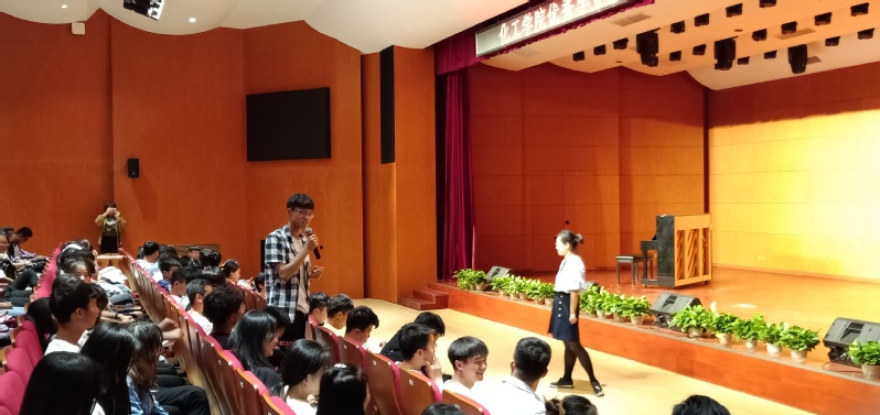 在接下来的提问环节上,低年级的学生都踊跃发言,向优秀的学长们请教,了解他们的作息规律和参加校园文体活动的情况。最后,董鸿汝副教授对于此次的学习经验交流会做了总结,她表示对于优秀毕业生能够参加此次学习经验交流会表示诚挚感谢,也表达了对于每位化工学子的深切祝福。