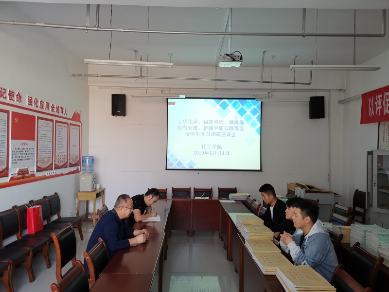 在下午的座谈会上,副院长杨光和辅导员陈艺溶老师与在万华化学、福建申远、镇海炼化利安德实习的吴志浩、陈江、牛鑫三位实习学生亲切交谈,询问他们在企业实习、生活、待遇等情况,三位同学详细介绍他们在企业的工作、学习和生活等实际情况,他们表示:对各自实习的企业非常满意,刚实习的时候觉得在学校学的东西可能用不上,但是在几个月的实习中逐渐发现在校学习理论的重要性,目前培训的重点还是在工艺流程上,结束培训后将前往一线实习。杨院长希望实习的同学能够将理论与实践相结合,迅速进入工作状态,在企业快速成长,开好头、树标杆,做一名合格的员工。